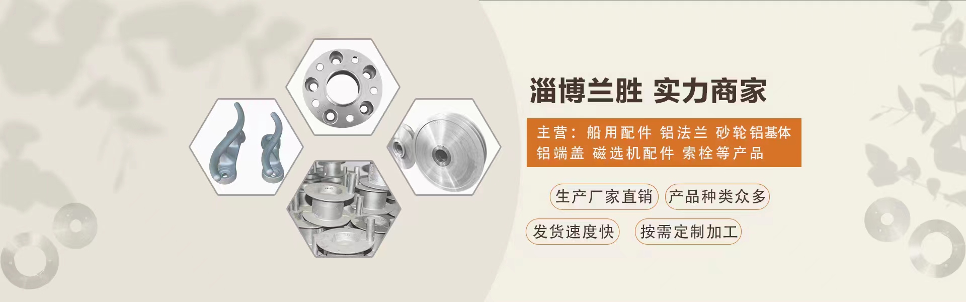 淄博蘭勝機械廠生產船用配件,鋁法蘭,砂輪鋁體,鋁端蓋,磁選機配件,索栓等普通鑄鐵、球墨鑄鐵等各種鋁制品。可依照客戶來圖來樣提供獨立生產模具、成品化驗等服務。質量好,價格合理,交貨及時。